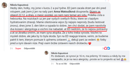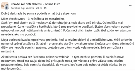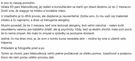 "Syn trpěl ekzémem 3 roky a v kurzu ekzém zmizel do 2 měsíců."